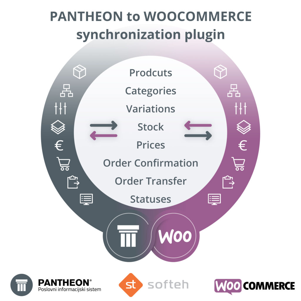 Integrimi i dyqanit në WooCommerce me sistemin e informacionit të biznesit ERP Pantheon mundëson përpunimin optimal të porosive dhe modelimin e thjeshtë të programit të shitjeve. Meqenëse WooCommerce është një azhurnim i portalit më të përhapur për redaktimin e faqeve në internet të WordPress, zgjedhja e kësaj platforme është më racionale dhe me një grup plugin-ash ekzistues një nga platformat më të përhapura në internet të kësaj kohe. Lidhja me sistemin e informacionit të biznesit ne Pantheon bëhet me një plug-in të softuerit, SofWoo. Plug-in mundëson komunikim plotësisht të automatizuar te dyanshëm me dyqanin online dhe ERP Pantheon, dhe menaxhimin e stoqeve, çmimeve, zbritjeve, klasifikimeve, kampanjeve të shitjeve dhe porosive. Kjo thjeshton ndjeshëm vetë procesin e shitjeve dhe përmirëson përvojën e përdoruesit. Sidoqoftë, për webmasterat sjell shumë thjeshtime që nuk ishin arritur më parë me integrimet klasike.