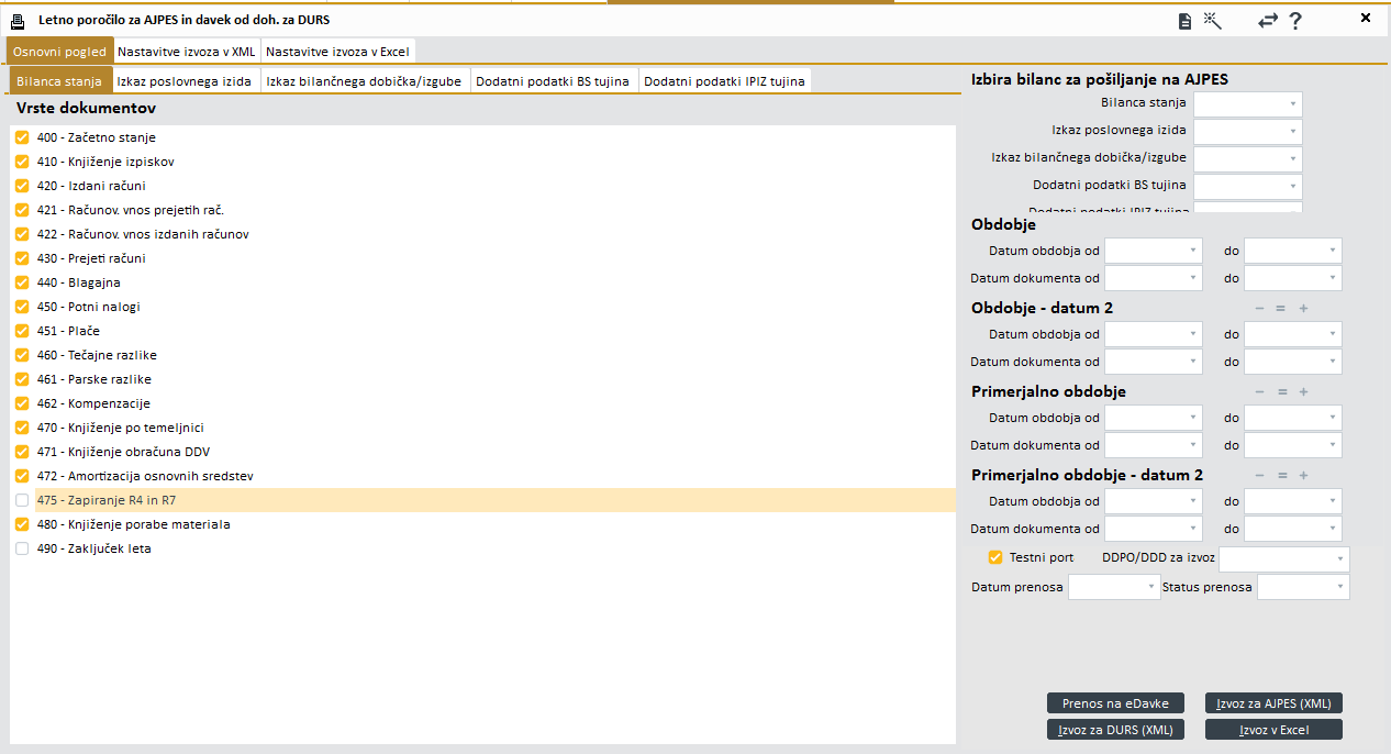 - Možnost avtomatskega prenosa Bilance stanja, Izkaza poslovnega izida in Izkaza bilančnega dobička/izgube na AJPES, po predhodno nastavljenih predlogih bilanc